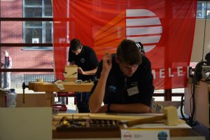 Wie vorige week bij de open dag van HMC Amsterdam was, kan het bijna niet gemist hebben: de kwalificatiewedstrijd voor meubelmakers van Skills Heroes vond op school plaats. Twee dagen lang streden in totaal 13 deelnemers van verschillende mbo’s in Nederland voor een plek bij Skills the Finals. Er deden twee studenten van het HMC mee en zij zijn alle twee door naar de finale. Wat een prestatie!