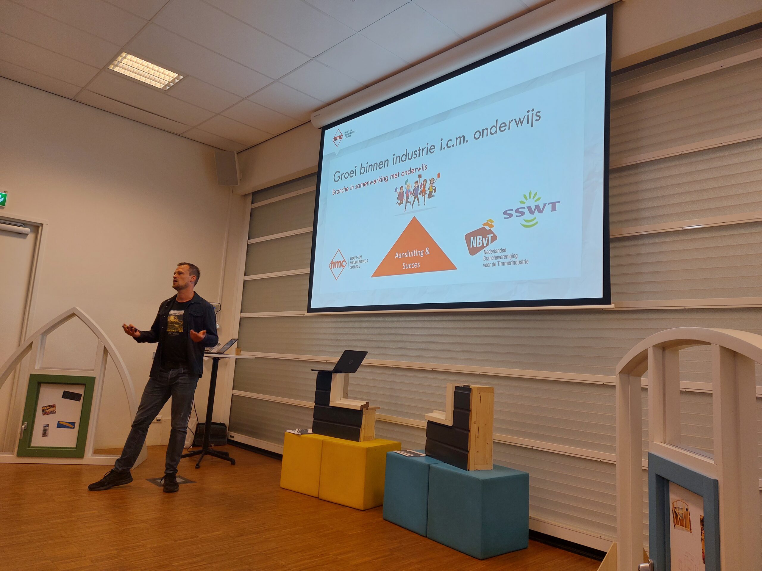 Maandag 16 mei was de tweede brancheavond Houttechniek op het Hout- en Meubileringscollege (HMC) in Rotterdam. De brancheavonden zijn een samenkomen van het onderwijs, de hout- en de timmerbranche en een initiatief van het HMC, de Stichting Sociaal en Werkgelegenheidsfonds (SSWT) en de Nederlandse Branchevereniging voor de Timmerindustrie (NBvT). Deze samenwerking staat hoog in het vaandel en dit jaarlijks terugkerende evenement is het moment om met elkaar te spreken over de ontwikkelingen in de branche en onderwijs.