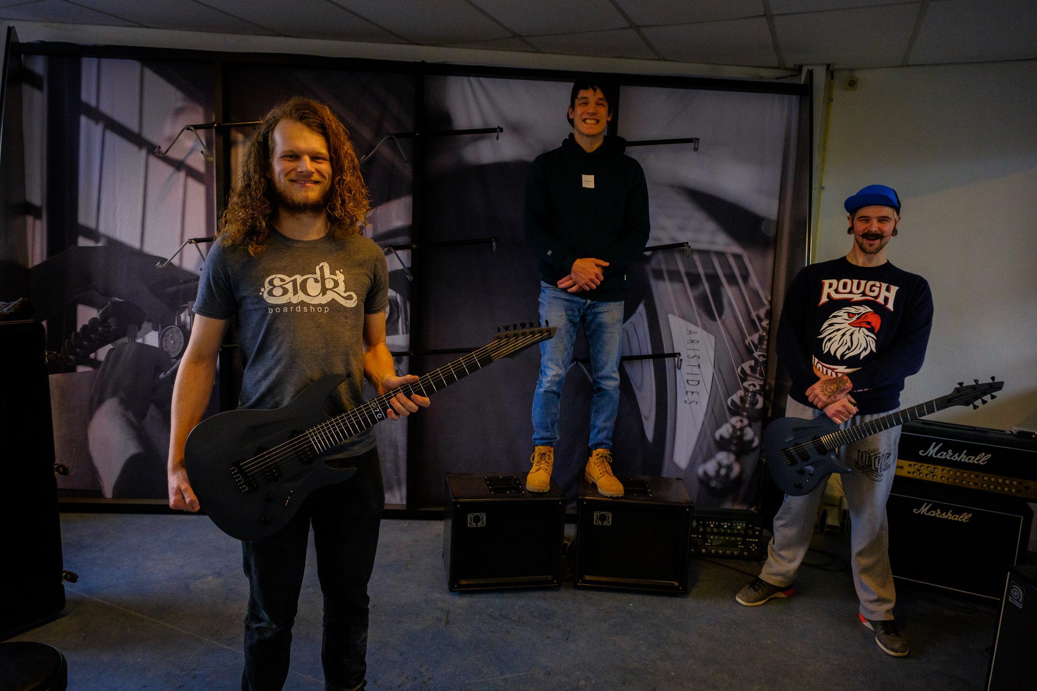 “Samen met Terence liep ik stage bij dezelfde gitaarwinkel in Haarlem”, vertelt Perry. “Een half jaar nadat Terence in dienst ging bij Aristides kwam er een vacature vrij. Terence heeft mij bemiddeld. Vervolgens werd ik benaderd en kon vrij snel aan de slag.” “We kunnen ook niet zonder elkaar”, grappen de jongens tegelijkertijd.