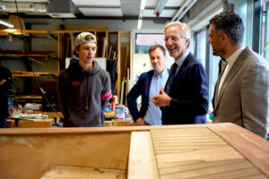De dag begon met een bezoek aan het botenbouwlokaal, de eyecatcher van het HMC. Hier ging minister Dijkgraaf in gesprek met student Joost ’t Sas over de boot die hij maakt samen met medestudenten. Minister Dijkgraaf was duidelijk onder de indruk en sprak zijn verbazing over het vakmanschap van de studenten uit. Vervolgens trapte wethouder Mbarki het gastcollege af, waarbij hij vertelde over zijn weg naar de functie van wethouder toe. Hij ging met studenten uit de zaal in gesprek over de rol van een wethouder. Wat denken zij dat een wethouder zoal qua werkzaamheden doet? Als laatste besprak hij het onderwerp ‘stagevergoeding’ met studenten. Een onderwerp dat momenteel erg leeft en waar gewerkt wordt naar verbeteringen in de gelijkheid voor mbo’ers.