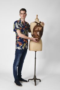 Met het ontwerp wil ik laten zien dat er veel meer te realiseren is met hout dan alleen een meubelstuk. De rugtas is gebaseerd op de vorm van een geometrisch gezicht. Om deze vorm te creëren bestaat de tas uit 120 driehoeken die in verstek aan elkaar zijn gelijmd. De uitdaging van dit project was vooral het bedenken en onderzoeken van verschillende werkprocessen. Hierbij maakte ik gebruik van technieken zoals cnc-frezen, 3D-printen en lasersnijden.