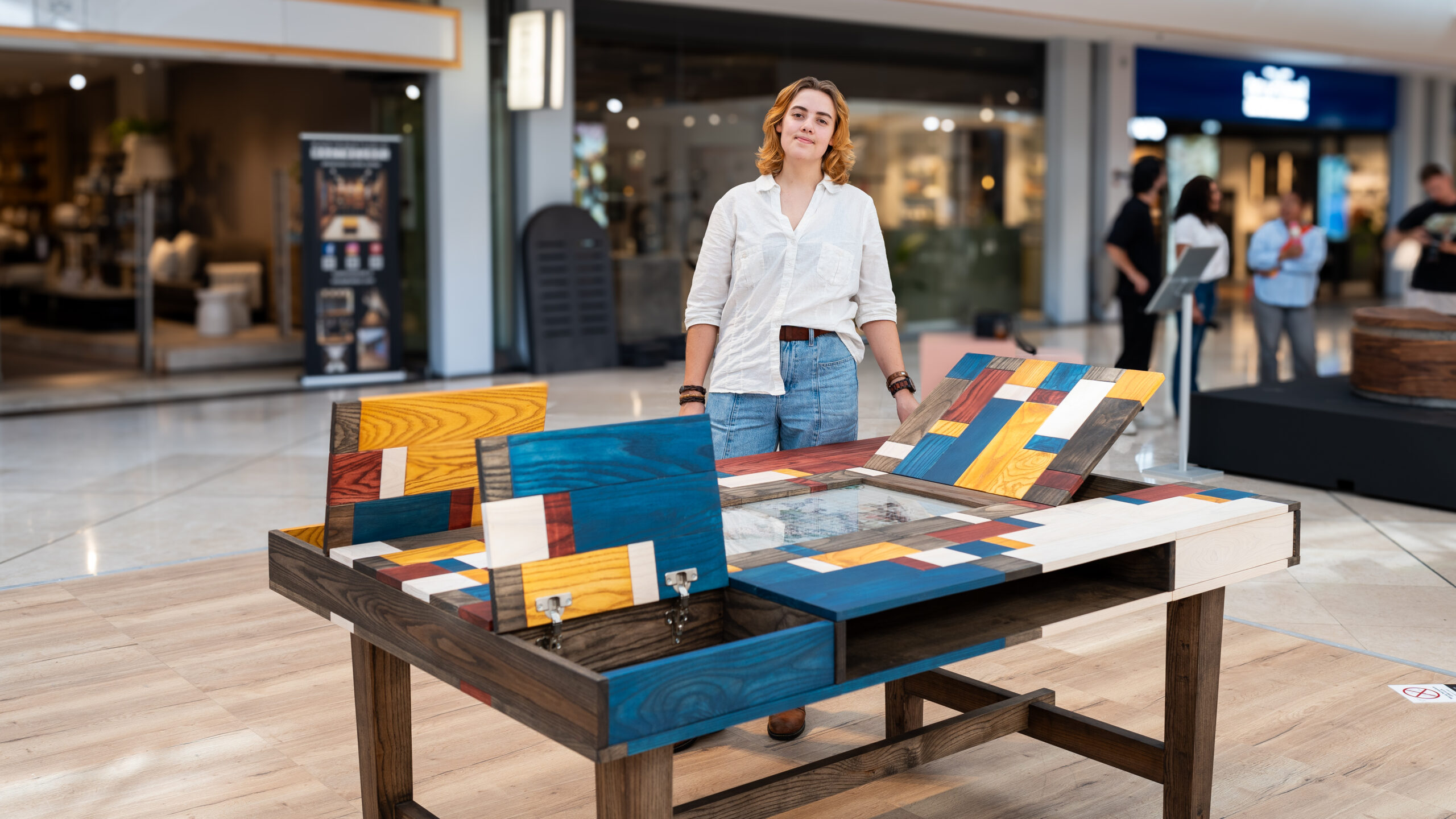 Een geselecteerde groep (afgestudeerde) studenten van het HMC mag dit jaar weer hun eindwerkstuk exposeren bij Woonmall Alexandrium. Ze doen mee met de wedstrijd Young Designer en maken kans op de Woonmall Publieks Award. Samen met trendwatcher Monique van der Reijden is er een selectie gemaakt van de meest inspirerende ontwerpen van jonge meubelontwerpers en interieurstylisten. Deze indrukwekkende projecten zijn te bewonderen in het atrium van Woonmall Alexandrium.