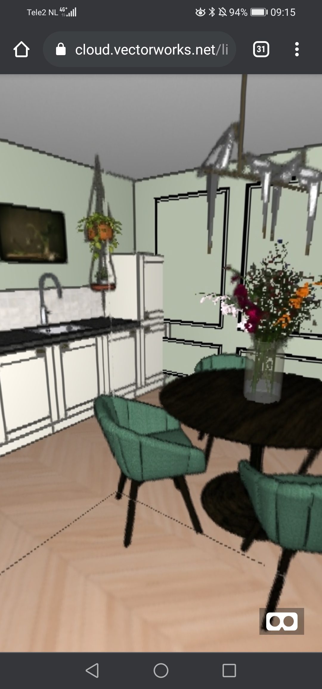 Met behulp van een QR-code kan het ontwerp in een webbrowser of met de Vectorworks Nomad App bekeken worden.(zie App Store of Google Play) De interieuradviseur en de klant kunnen zo het advies op afstand/online bespreken. Met deze Nieuwe technieken is het ‘Het nieuwe interieuradviseren’ klaar voor adviseren op afstand. Begeleid door docenten interieur en divo jaar 3-4 Lesprogramma, Wim van Hornsveld, Mieke van den Dool, Anneke Janson.