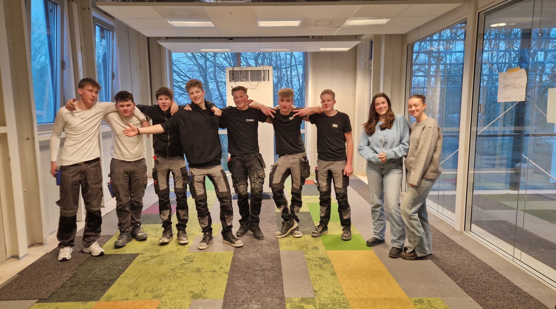 Twee studenten van de opleiding Interieuradviseur ontwierpen een vloerplan geïnspireerd door de natuur. Ze vertaalden natuurbeelden naar pixelpatronen, die een unieke uitstraling creëerden. Vervolgens zetten zeven studenten van de opleiding Interieurvakman (M/V) (woningstofferen) hun technische vaardigheden in om de tapijttegels vakkundig te leggen. Het resultaat is een vloer die vakmanschap en samenwerking perfect weerspiegelt.