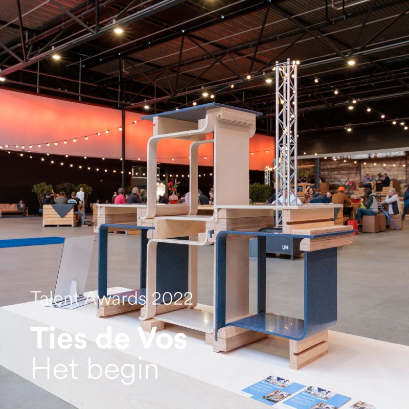 Tijdens de eindexamenexpositie van het HMC heeft Baars & Bloemhoff studenten uitgekozen die hun werk mochten laten zien tijdens de HoutPro+ beurs! Bezoekers konden stemmen op hun favoriete HMC talent van de toekomst! En er is volop gestemd! Met maar liefst 45,3% van de stemmen is de winnaar van de HMC Talent Awards 2022 Ties de Vos geworden met het meubel “Het Begin”!!! Zoals de jury het al eerder beschreef: “Deze modulaire kast van onder andere buistriplex en gebogen HI-MACS delen toont next level materiaalgebruik. De spannende over-the-top verbindingen zijn recyclebaar en buigbaar, een spannend geheel!” Ties ontvangt een materialencheque t.w.v. €250 van Baars & Bloemhoff! Van harte gefeliciteerd met deze prestatie!