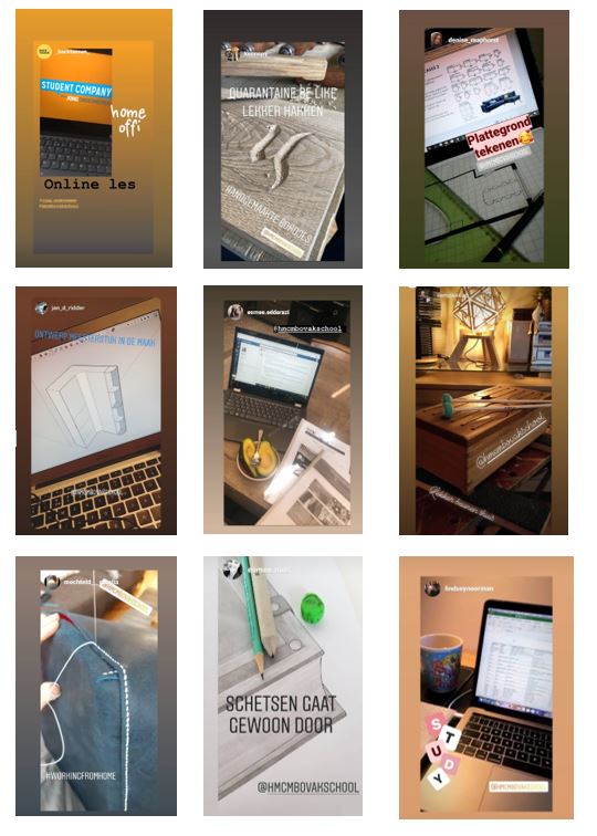 Alle studenten volgen nu onderwijs op afstand. De basis voor het onderwijs op afstand is Magister en daarnaast wordt gebruik gemaakt van Teams van Office 365. Hieronder zijn een aantal beelden te zien van studenten die thuis onderwijs volgen: