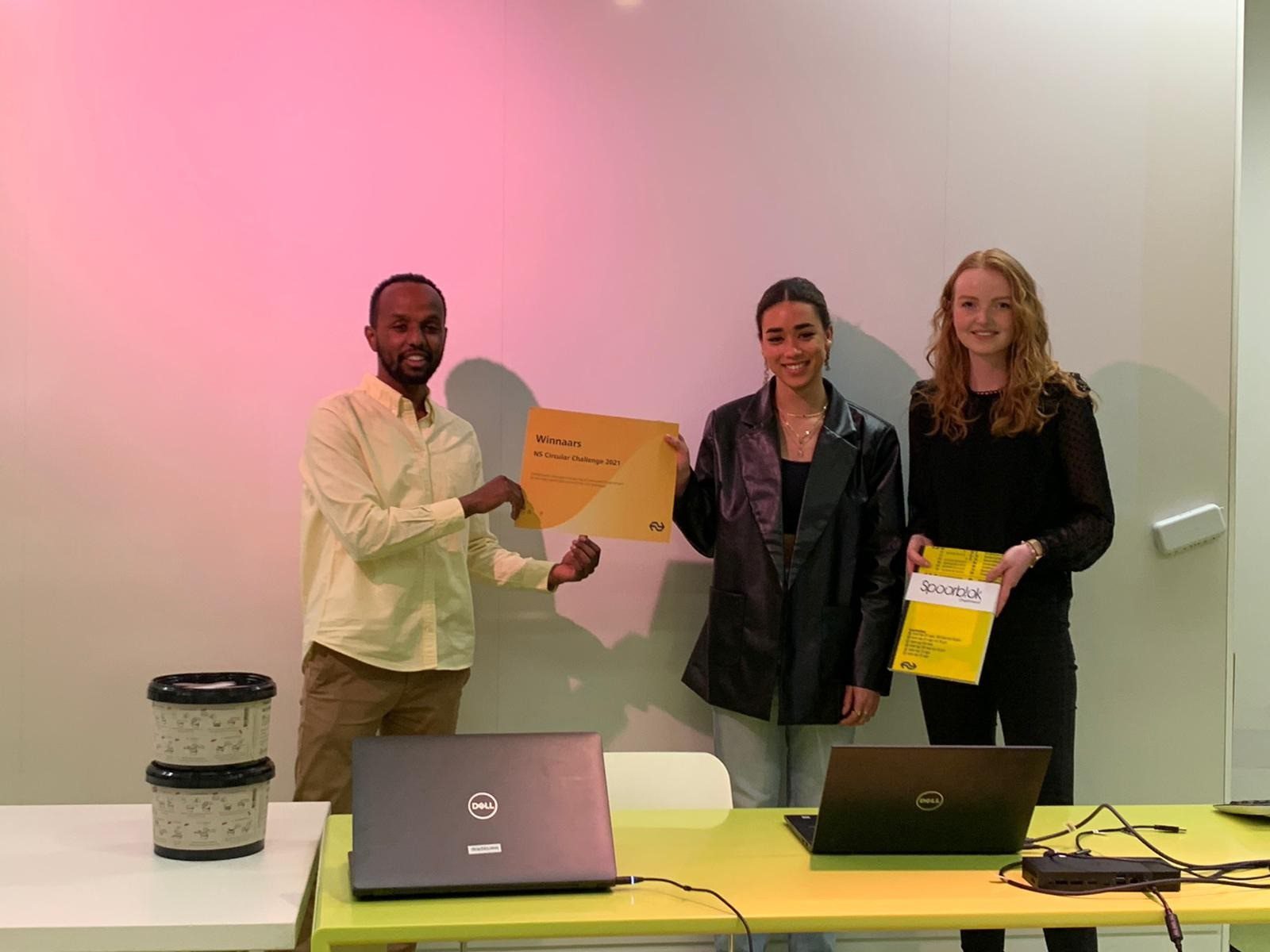De resultaten mochten er wezen! Elena en Gaby wonnen met hun hippe schommelstoel de 1e prijs in de categorie ‘Interieur-item maken van reststromen’. Ze mogen hun ontwerp pitchen bij de NS. Roos en Ilona wonnen met hun rijke toepassing van allerlei duurzame materialen de 1e prijs in de categorie ‘Duurzaam interieuradvies’.