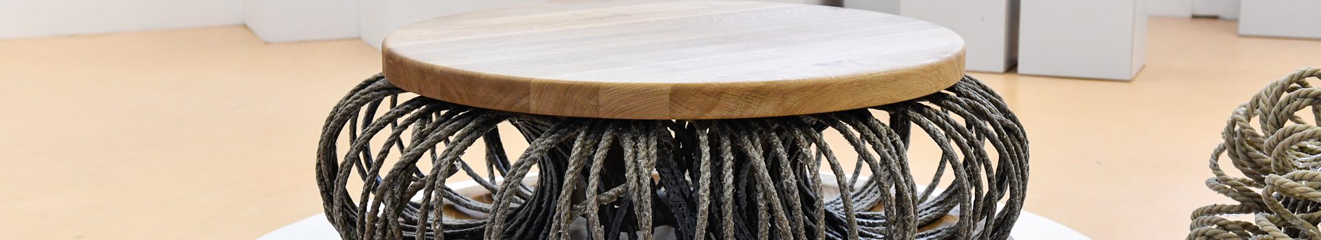‘Het HMC is voor mij een goede school geweest, ik heb veel geleerd en de ruimte gekregen mij te ontwikkelen. De docenten hebben mij enorm geholpen. Lijkt jou dat ook wat? Dan zou ik een keer langs komen. Dan merk je meteen of jij je hier ook thuis voelt. Stel dat je dan ook de opleiding Creatief vakman gaat doen, luister dan niet altijd naar de docenten (houd je wel aan de regels). Ze hebben het beste met je voor maar raden soms dingen af die zij ook niet kennen. Door het te proberen ontdek en leer je dingen. Als je er zelf in gelooft lukt het jou misschien ook om de docenten sprakeloos te krijgen. Hoe mij dat is gelukt? Met mijn eindexamen stuk, de Wireless serie. Ik ben begonnen met het ontwerpen van een stoel, geïnspireerd op de Knotted chair van Marcel Wanders. De tafel is mijn examenstuk, maar een set leek mij leuker. Zou verhard touw ook lekker kunnen zitten? Iedereen kan dat nu proberen op mijn poef. Zowel de tafel als de poef zijn nog concepten, ik hoop dat ik het kan door ontwikkelen.’