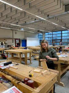 ‘En in dat laatste hebben ze gelijk. Ik vind het super leuk! Tot nu toe heb ik vooral verschillende ambachtelijke technieken geleerd en bepaalde machinale handelingen. Soortgelijke opleidingen als het HMC aanbiedt, zijn er niet op hbo-niveau. Daarbij leer je grotendeels praktijkgericht, wat ik persoonlijk aantrekkelijker vind dan alles maar uit boeken te moeten leren.’